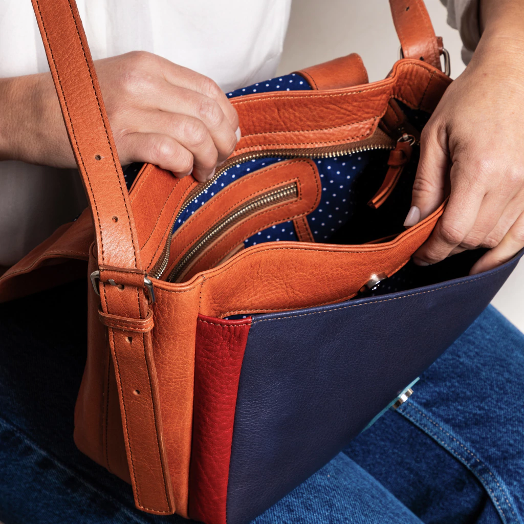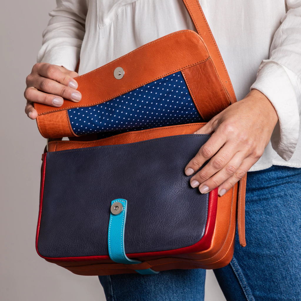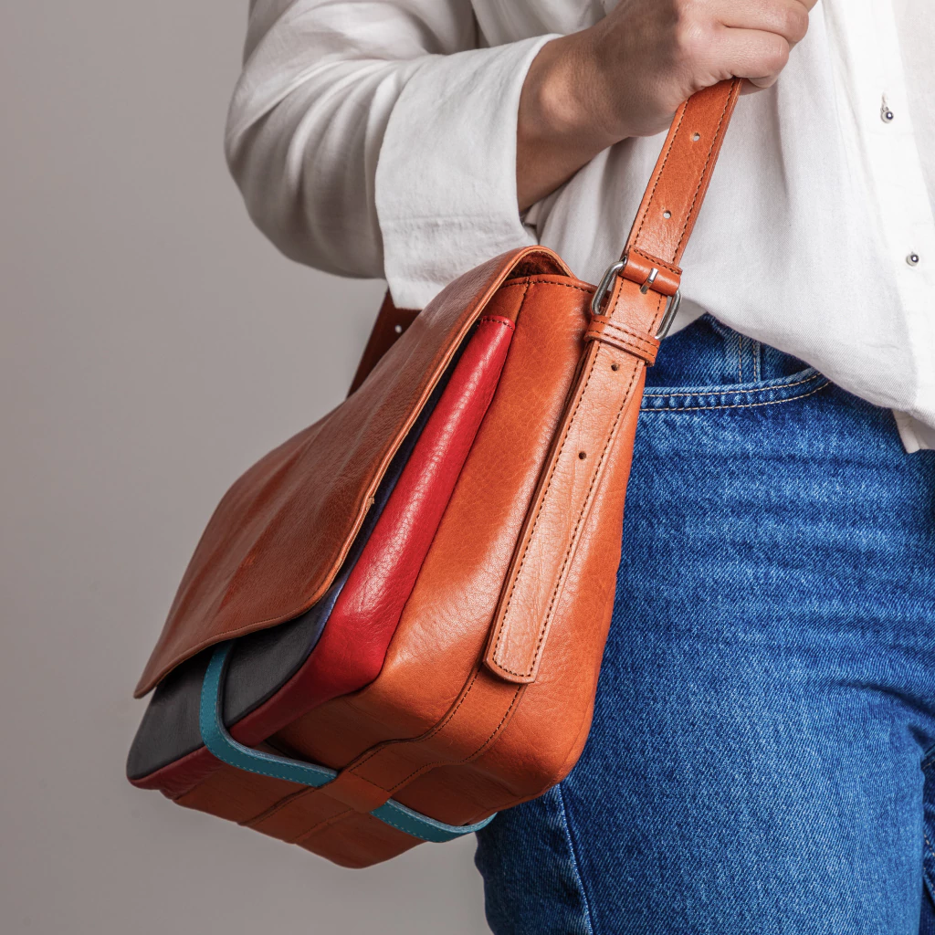 Bandolera Verona suela combinada. Cartera 100% Cuero vacuno argentino.