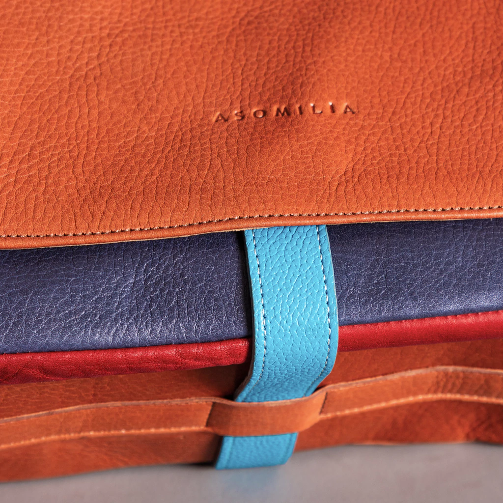 Original y cómoda bandolera de cuero, con imán y cierre principal para acceder. Base amplia. Bolsillos exteriores planos delante y detrás, con imán. Más dos bolsillos dentro, con cierre y sin cierre. El interior se encuentra forrado en tela y cuenta con práctica tira con mosquetón portallaves. La correa larga es regulable.